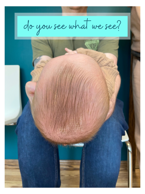 In our experience, the first time a parent becomes aware of a flat spot on their baby’s head is either from: 1) a health care practitioner, or 2) a friend or family member who’s own baby needed head shape correction and so it is on their “radar” a bit more than others. But once the mention of a flat spot occurs, it can be confusing to know what the next best action is to take.